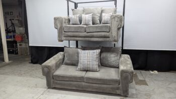 Grey Verona 3 and 2 seater sofa set in good condition. Professionally washed, upgraded cushions, no rips or tears. Light smoke smell may still be noticeable – reflected in the price. Fast delivery available. 7-day warranty included.