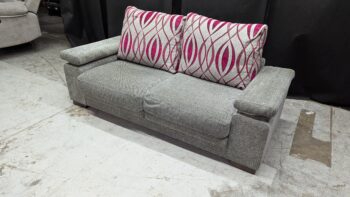 Used grey fabric 3 seater sofa with adjustable seats and armrests. Professionally washed, very good condition, no rips or tears. Fast delivery, free local delivery, 7-day warranty included.
