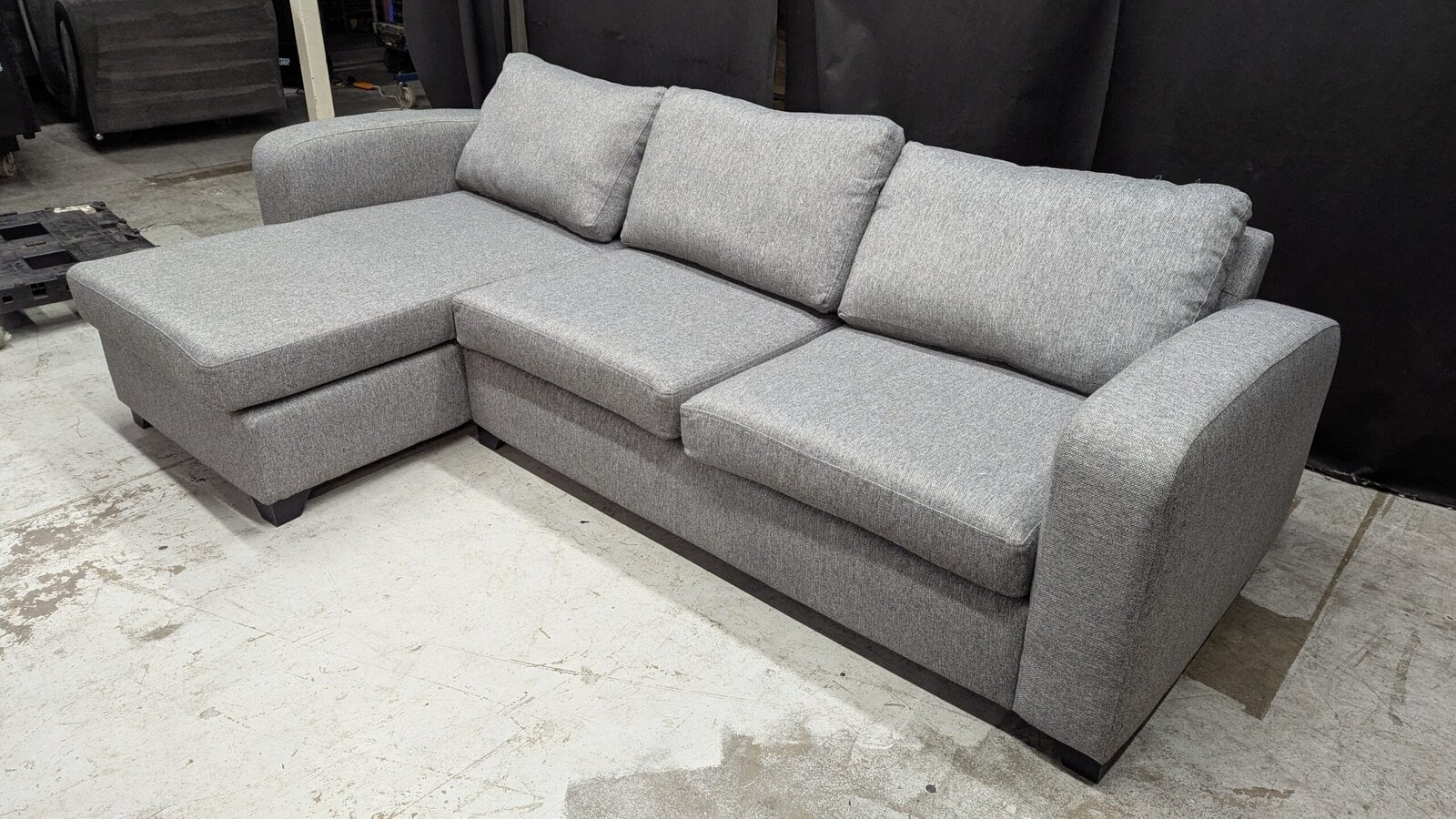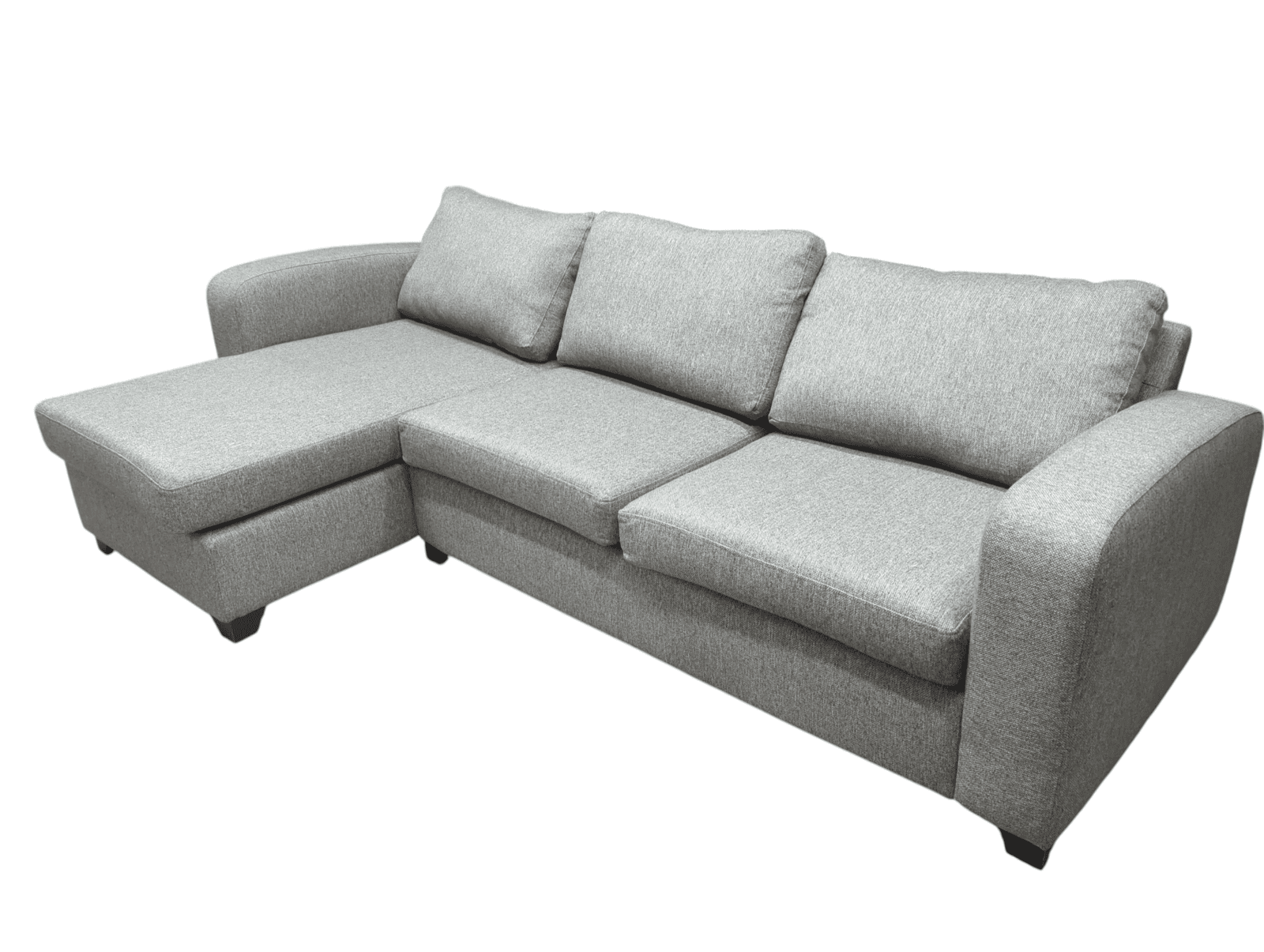 The sofa measures L270cm x D155cm x H75cm or 67cm without legs. Therefore, it is a great choice for anyone looking for a comfortable and roomy seating solution. This grey fabric corner sofa works well in both modern and classic homes.