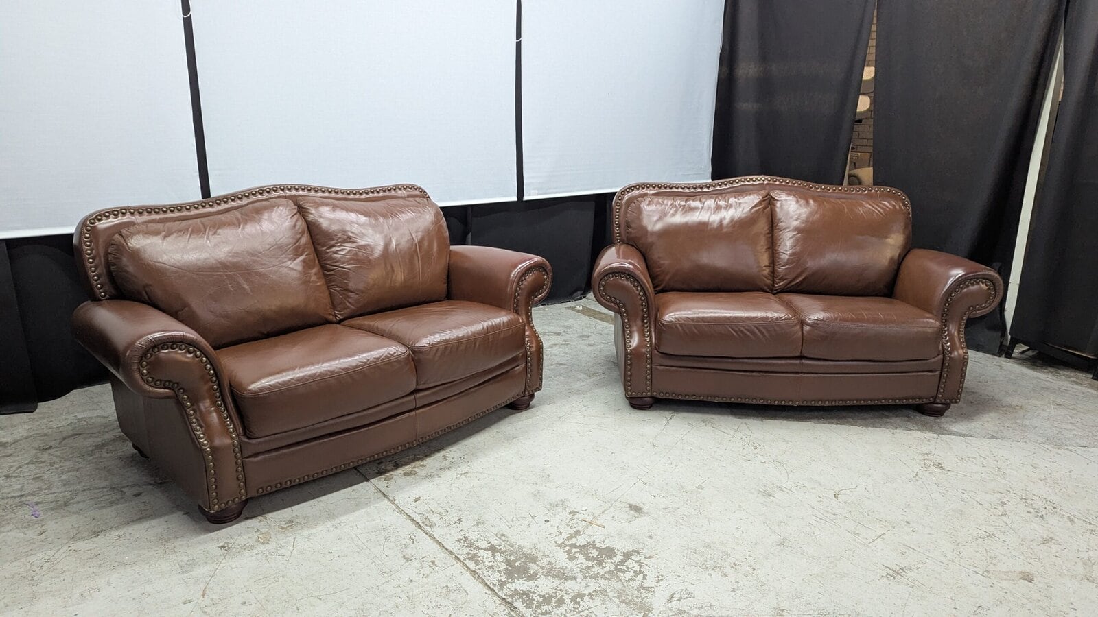 As with all our stock, this refurbished brown leather sofa set has been professionally restored: