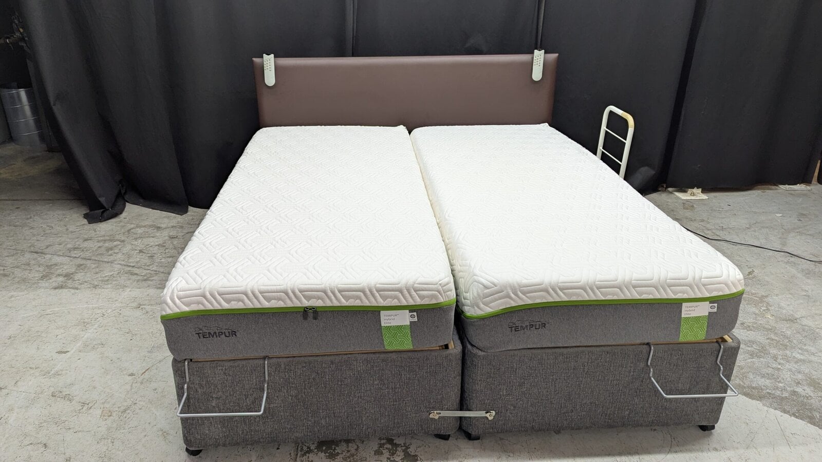 Tempur super king size bed with two mattresses in excellent condition. Integrated massage functions, lift-up system, modern continental design, fast delivery, and 7-day warranty included.